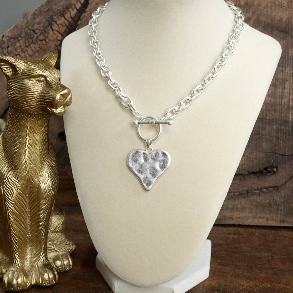 Boho Hammered Heart Front Toggle Necklace – Rustic Gold or Silver