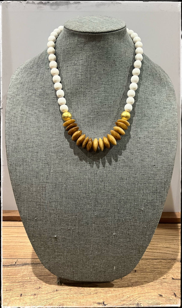 White Wood & Disk African Bone Bead Short Necklace Layering