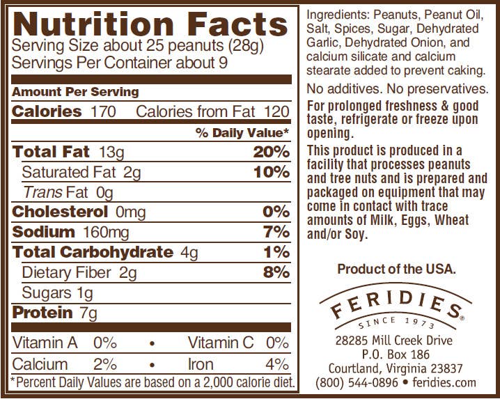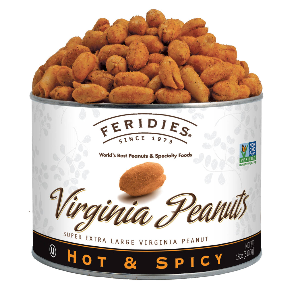 Our Hot and Spicy Virginia Peanuts are seasoned with an all-natural assortment of the finest pepper based spices. These super extra large peanuts will knock you for a loop but the flavorful tasting sensation will bring you back for more. Seasoned to Perfection. Non-GMO Verified.