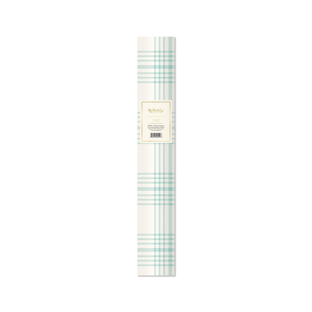 Make setting the table simple with this blue plaid table runner. Featuring a cream backdrop and pastel blue plaid, this runner is the perfect accent for your table top for your upcoming event.