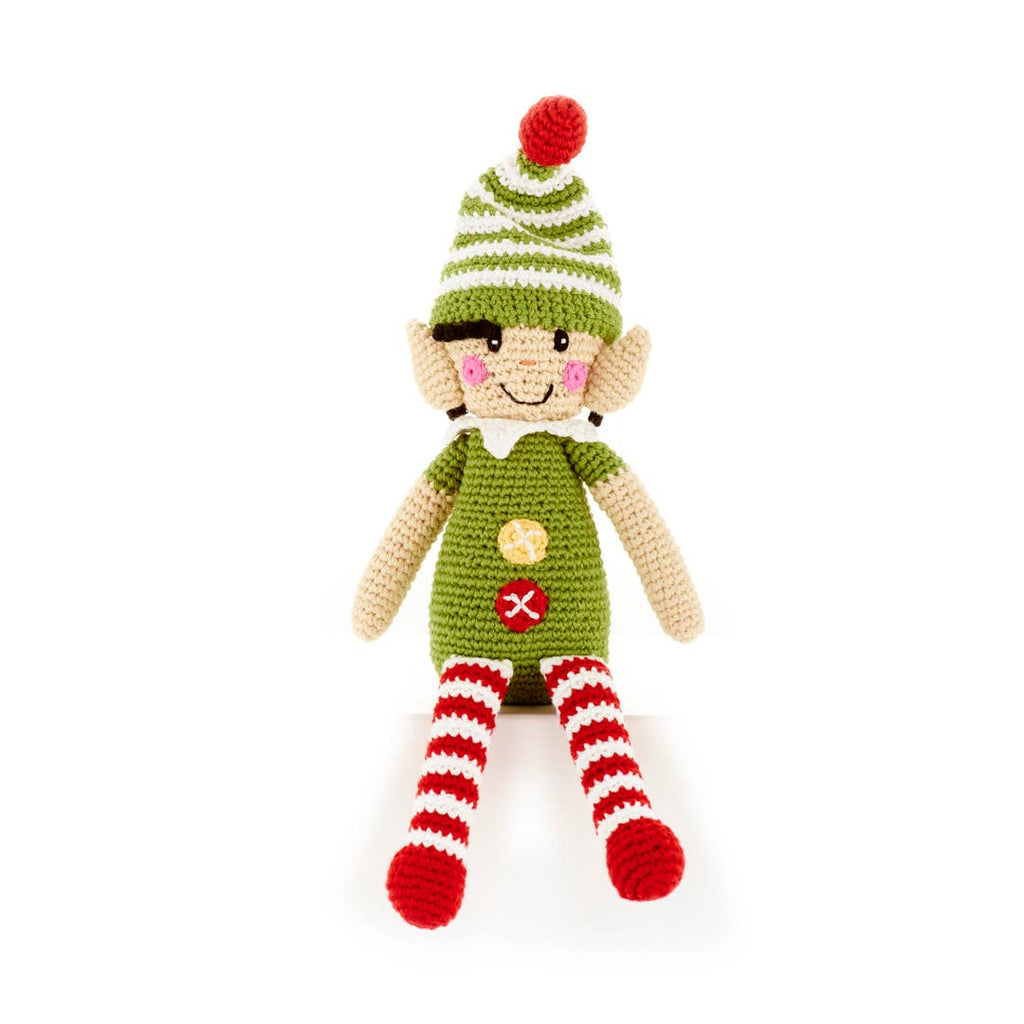 Set this plush Christmas Elf on a shelf and watch your customers fall in love! This crochet baby toy is handmade with cotton yarn and is soft and lightweight. The rattle inside gives a very soft sound when shaken. Perfect for stocking stuffer or Christmas gift topper. Pairs well with our other Christmas toys such as Santa and Rudolph.
