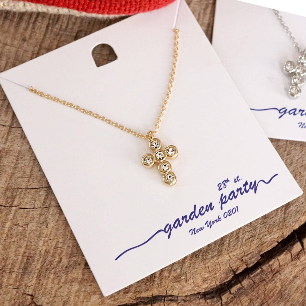 Classic Dainty Cross and Crystal Necklace – Gold Tone