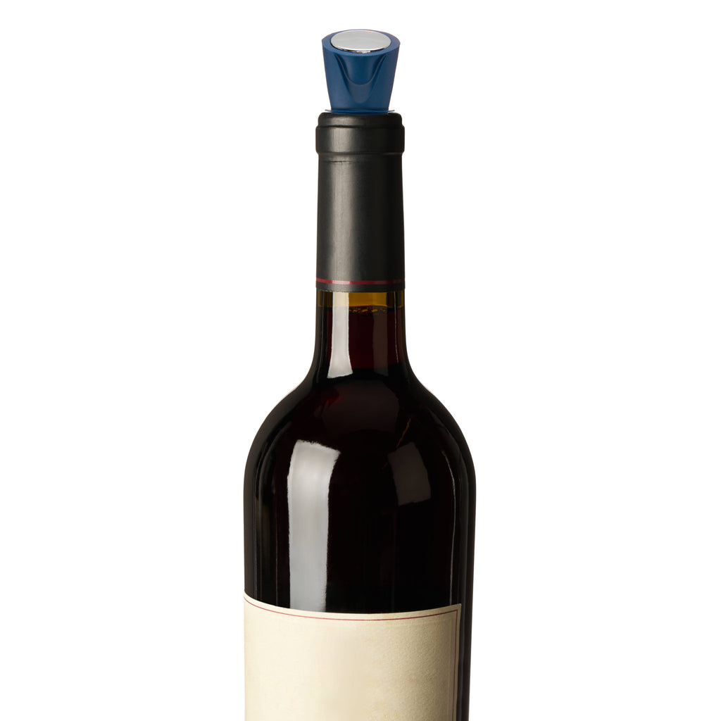Pop a colorful cone stopper into your bottle for better wine longer. A self-sealing row of silicone ridges make this an easy, airtight way to keep things tasting freshly uncorked. Quantity: Set of 2 Material: Food-safe silicone, stainless steel Care: Dishwasher safe