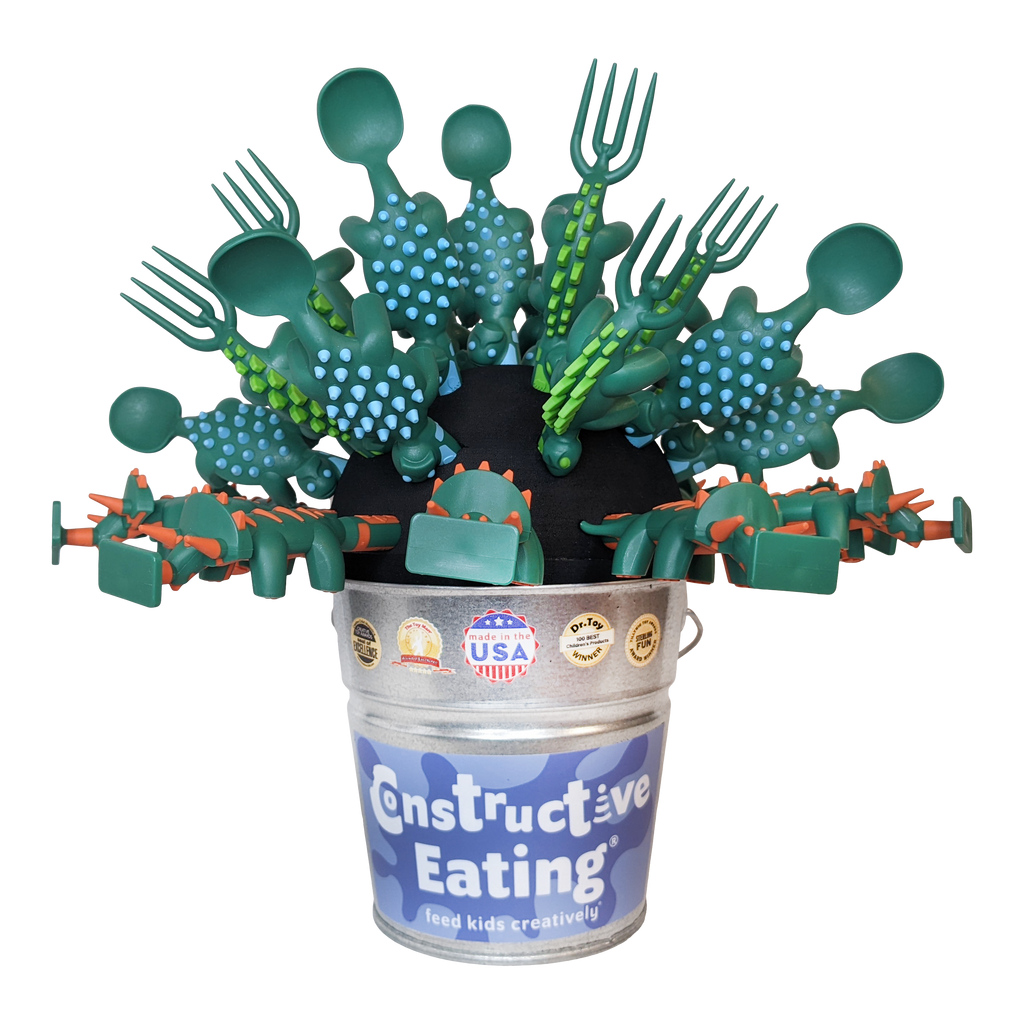 The dino fork is great for all dinosaur lovers! These utensils help children develop fine motor skills and independence. The textured handles make it easy for small hands to grip the utensils. Made and packaged in the USA. Dishwasher safe. Food safety tested materials, CPSIA compliant; BPA, Phthalate, PVC, lead, and paint-free.