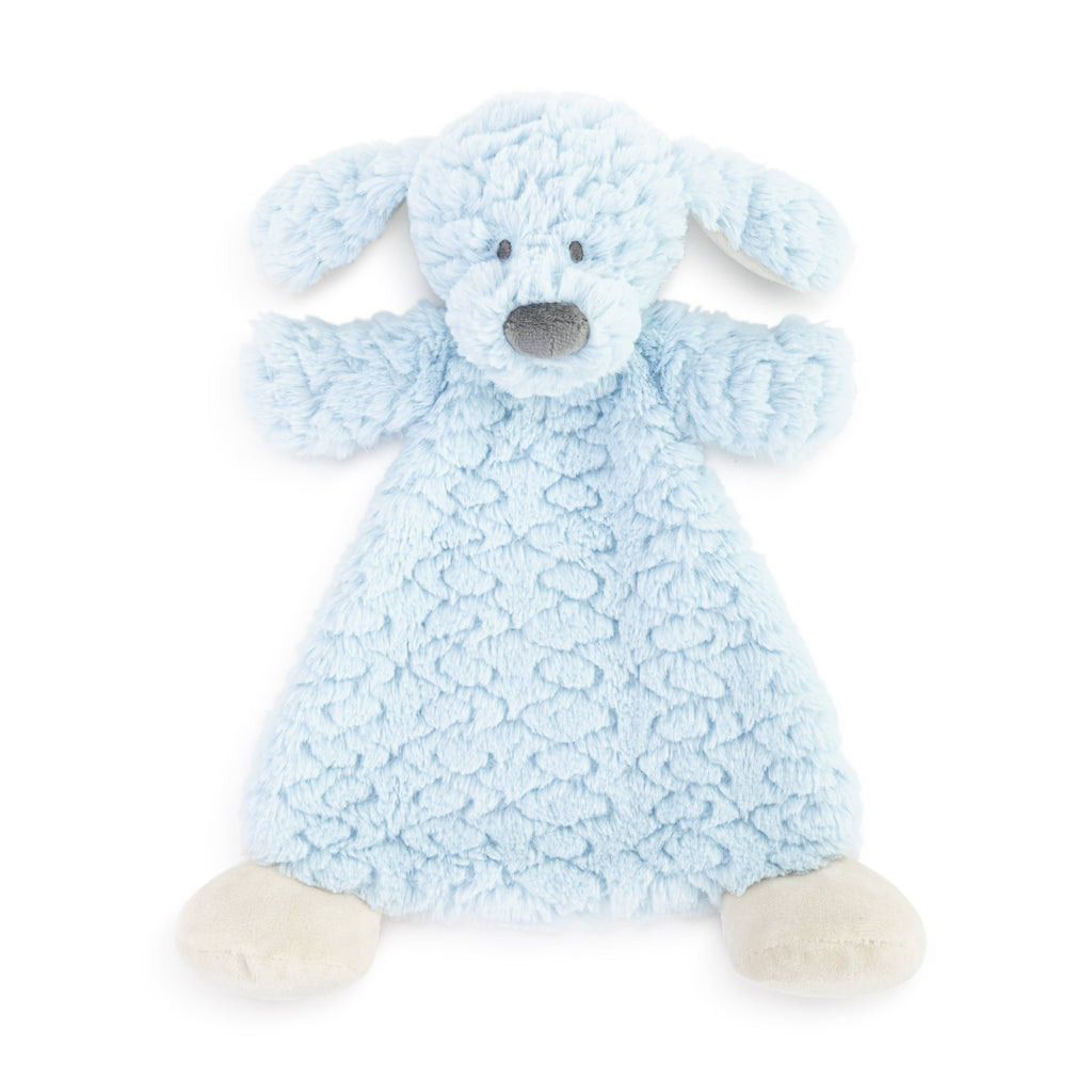Shake, rattle, roll and watch baby giggle and coo over the cute blue, blue and solid Duke Dog Rattle Blankie. A sweet, safe way to let baby snuggle up.