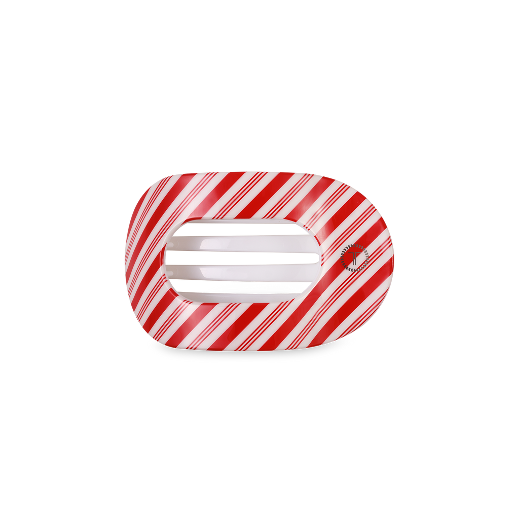 Lay flat and relax with the new TELETIES Candy Cane Crush Small Flat Round Hair Clip in Red and White Stripes. This hair clip is designed to allow you to lay back flat, do yoga, or sit comfortably in a seat with a headrest, and it is made with the same material that is nearly unbreakable. Lay down flat with comfort Bendable teeth for a secure yet gentle hold Lightweight, durable, and suitable for all hair types Perfect for all-day wear—from sunup to sundown The small size is 3.4 inches long.