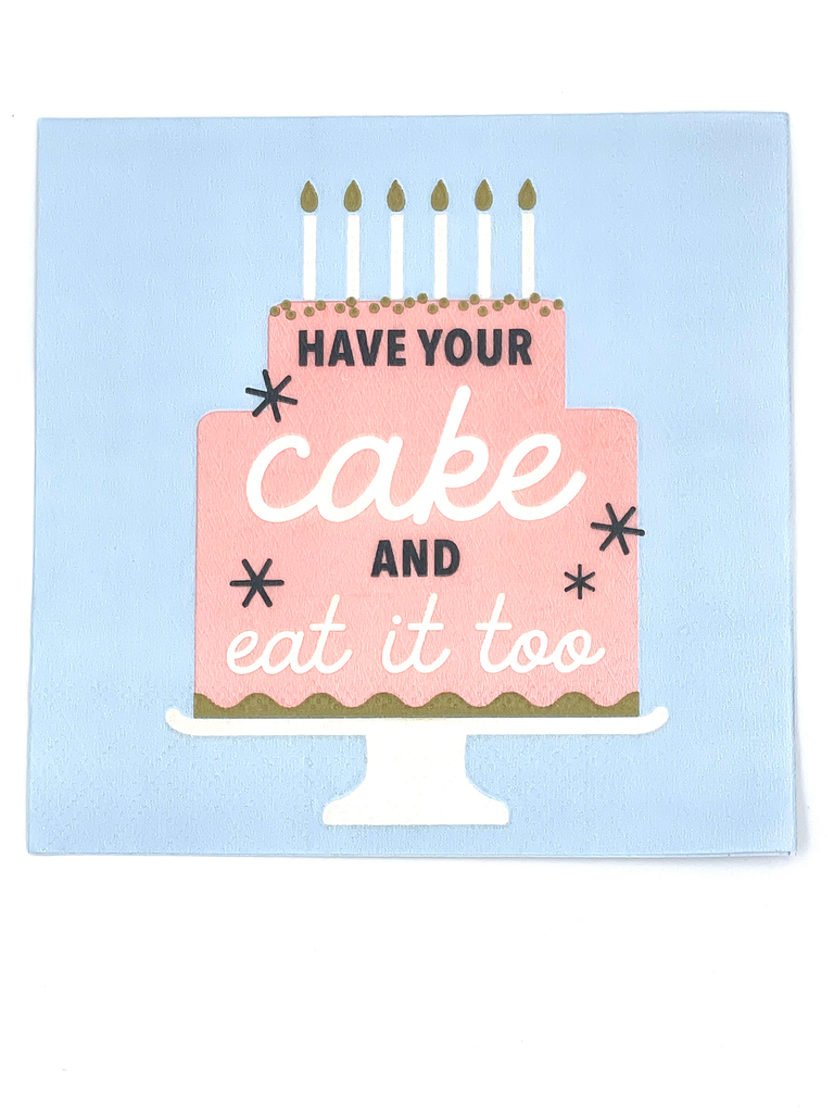 Have Your Cake and Eat it Too - 20ct These Birthday themed paper beverage napkins are perfect for celebrating and entertaining. Great tabletop decoration and add a touch of color and fun to any occasion. These soft and absorbent napkins help in cleaning stains and spills with great ease. You can use these paper napkins for any gathering or party. The colorful design on the napkins makes them a fit for any birthday celebration for a friend, family member or co worker. Details: Soiree Sisters Birthday Themed Paper - Beverage/Appetizer/Cocktail Napkins/Disposable Napkins for Parties and Entertainment/Party Supplies 20ct Dimensions: 3 ply 5" x 5"