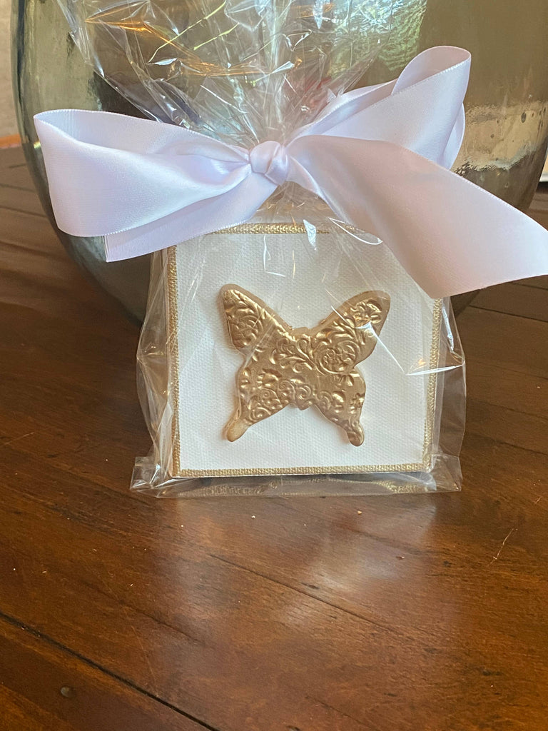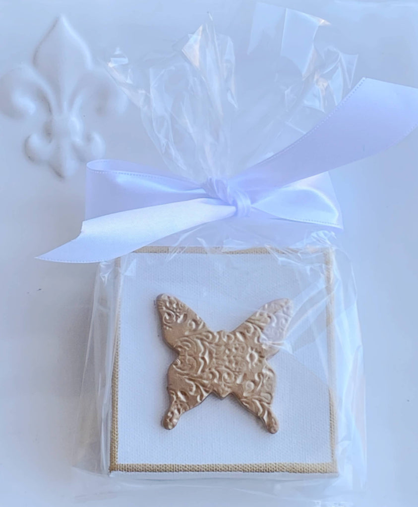 This hand-gilded butterfly canvas has beautiful detailing. The perfect home decor accent piece to style on an end table, bookcase, or anywhere in a home. It also makes a great gift.