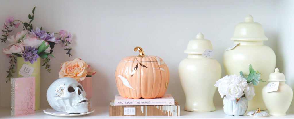 Our lidded pumpkin jars are hand-poured in Oklahoma and hand-painted by a Lo Home artist before being fired for a beautiful and durable finish which is food and water safe. Then, 22K gold accents are hand-applied to each piece for an heirloom-quality piece to be passed down and enjoyed for years to come.