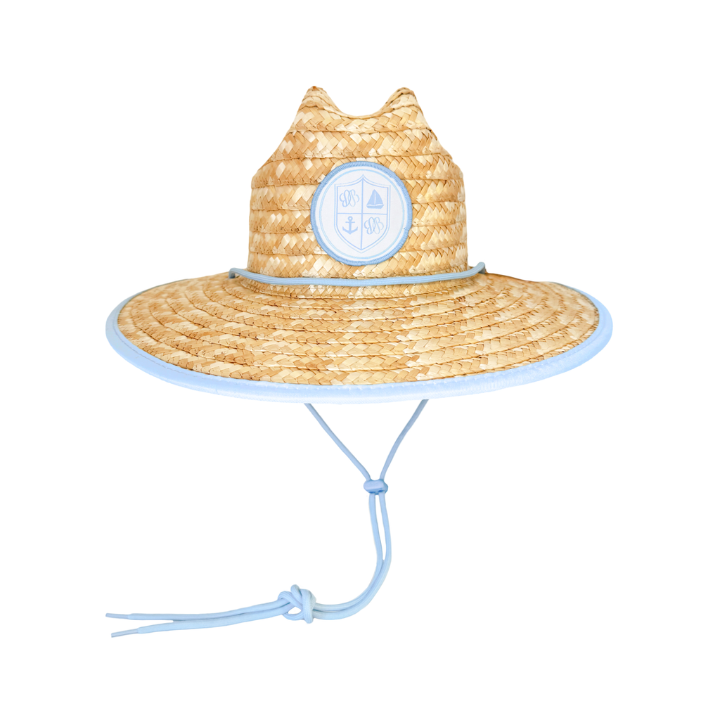 It was only a matter of time before the Lifeguard Hat got the playfully polished Bits & Bows twist! From days at the beach to boating on the bay or lake, this hat features a flattering, sun-protecting shape, breathable straw construction, adjustable chin strap, and a decorative patch inscribed with a coastal anchor, sailboat, and logo crest.
