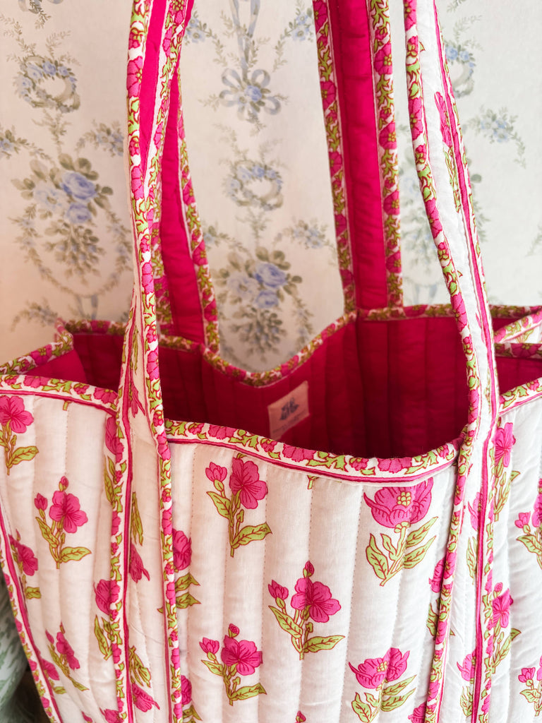 Showcasing our stunning Magnolia Floral print in beautiful pink and green hues, this tote is a timeless statement piece. Finished with our signature logo, it embodies effortless grace and sophistication.