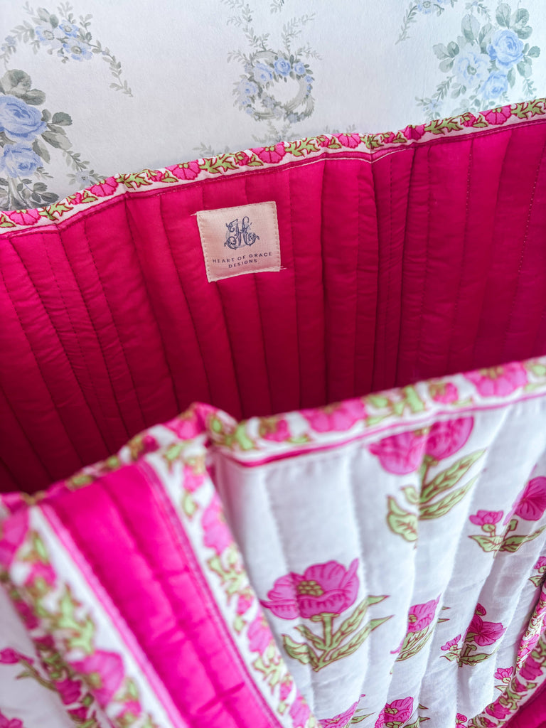 Introducing the Heart of Grace Designs Quilted Luxe Tote—a perfect blend of elegance and everyday functionality. Crafted with thick-grade quilting, this stylish tote offers a plush, high-end feel, enhanced by a contrasting border printfor a refined touch.