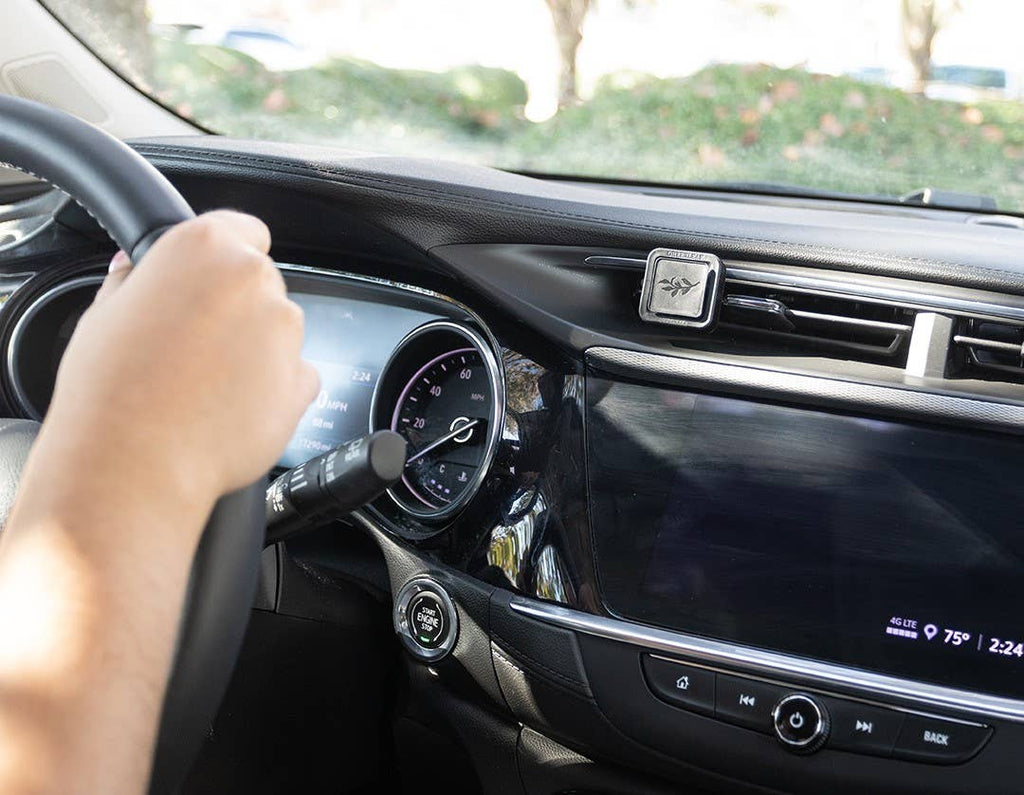 - Connect your auto vent clip to the desired air vent in your vehicle by sliding the clip onto one of the slats