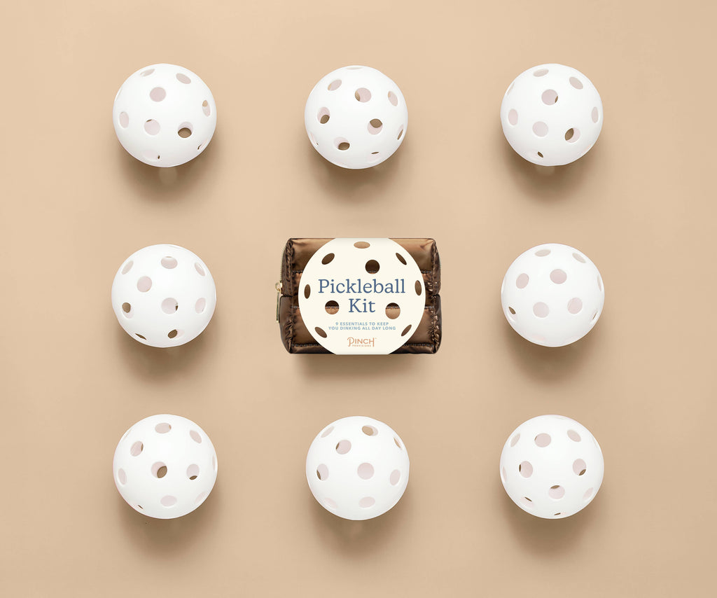 Do pickleball emergencies have you...in a pickle? Dink all day long with our new Puffer Pickleball Kits. With the pickleball craze sweeping the nation, this kit will be the perfect Easter, Mother's Day, or Father's Day gift. Contains 9 must-haves: sunscreen, hair tie, deodorant towelette, electrolyte tablets, ball retriever, cooling wristband, pain reliever, adhesive bandage, and blister balm.