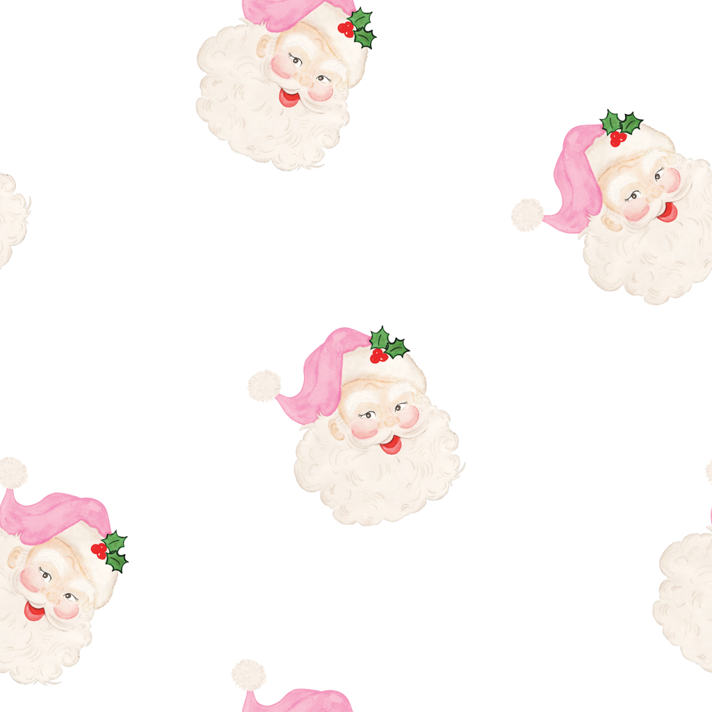 Watercolor Santa patterned wrapping paper available in red, pink, or blue. Gift wrap is printed on premium matte paper and is available in sheets of 3. Sets are rolled and packaged in a cello sleeve making it easy to display! Sheets measure 20” x 28” each