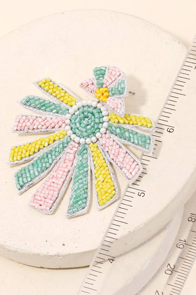 This is a soon to be trending pair of earrings that features a beautiful seed beaded round statement earrings design. This is great to wear during almost any occasion, and can suit casual or formal events perfectly.