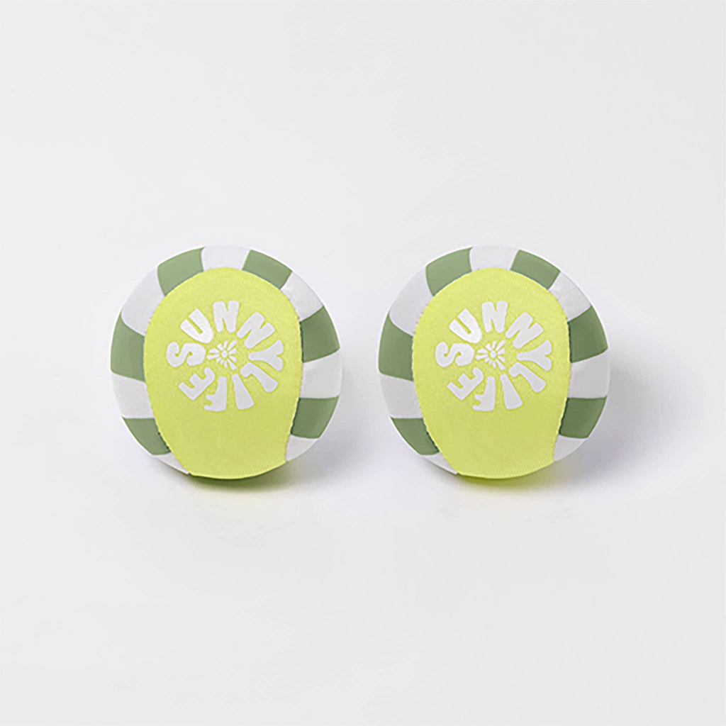 Set of 2 balls. Designed to skim and bounce on the water. Made from durable material.