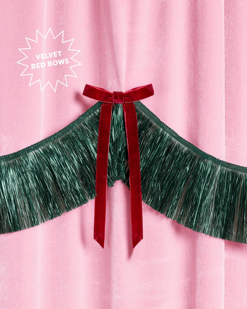 Xmas Bow Banner - fringe + velvet bows, christmas decor