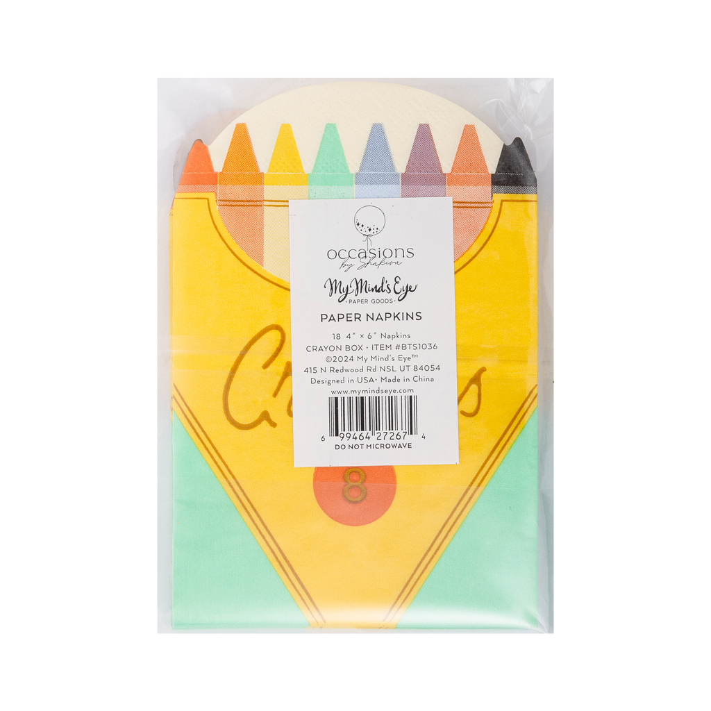 Turn your dining table into a colorful and fun canvas with our Crayon Box Napkin. This quirky and playful napkin, shaped like a crayon box, will add a touch of whimsy to any occasion. Bring out your inner child and make mealtime more entertaining! 18 4 x 6 inch paper napkins with foil accents