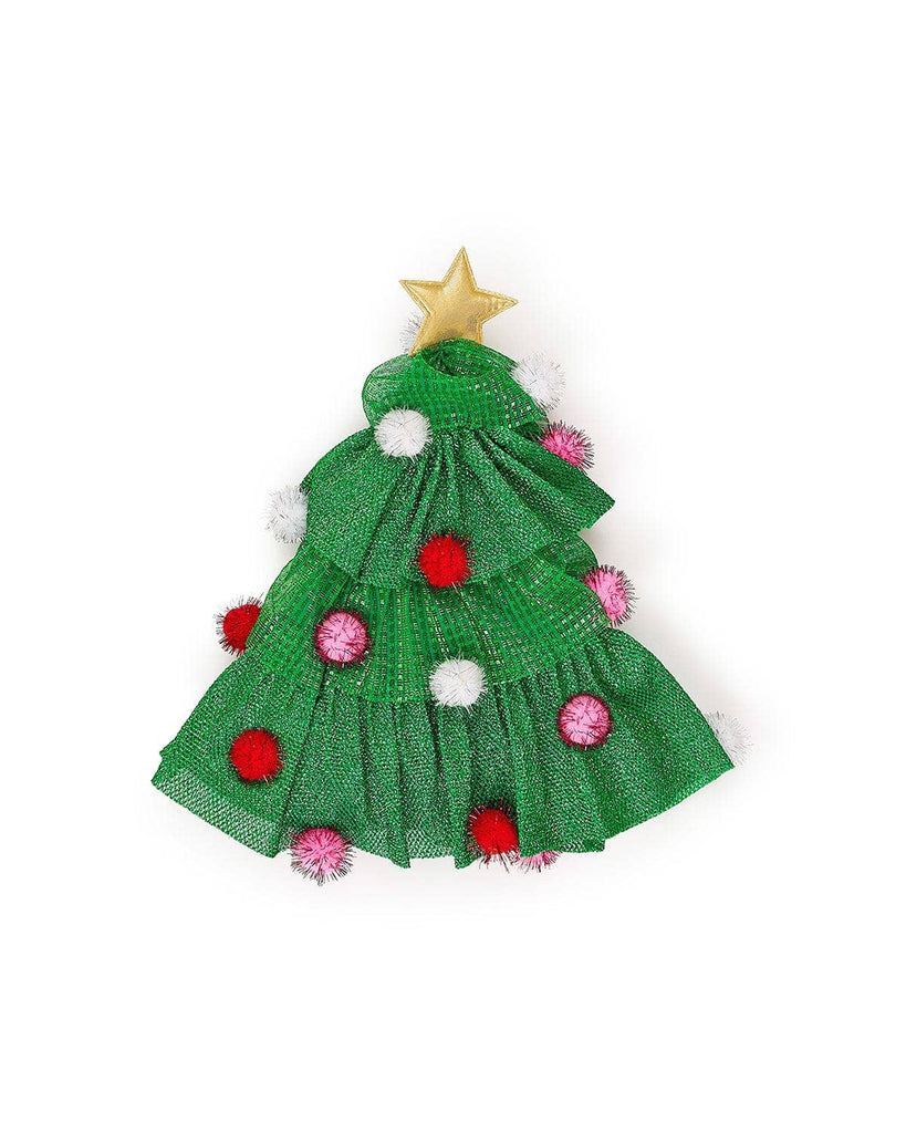 Be the life of this year's holiday party with this Christmas tree hat! Multi-layer tulle with tinsel pom details and a gold lamé star on top! * One size fits most * 17 in (H) X 13 in (L)