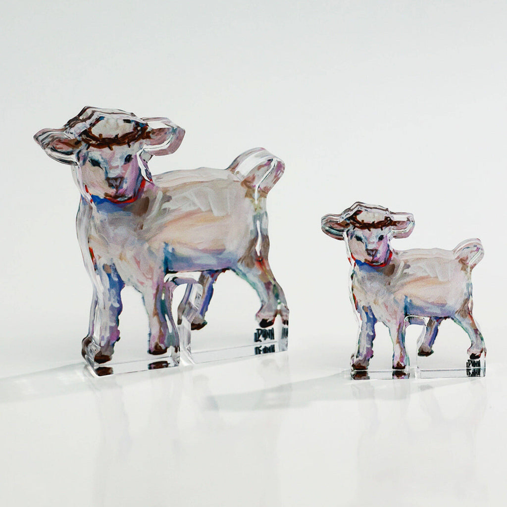 The "Lamb of God," as described in John 1:29, refers to Jesus's sacrificial role in taking away the sins of the world. Lauren wanted to represent Jesus' loving and humble heart as the lamb of God who willingly sacrificed His life so our sins could be washed white as snow. Lauren created the lion and the lamb to pair together as visual representations of the humble yet powerful character of our Savior. Dimensions: Large 3.5" x 3.25" x .75", Bitty 2.25" x 2" x .5"