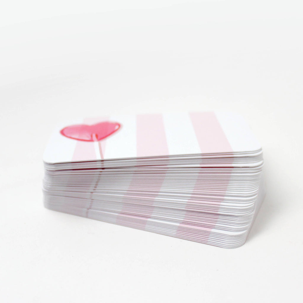 FIFTY adorable cards in a box (same design). Use them for lunches, valentines, tiny notes of encouragement, bookmarks, place cards, love notes and more. Inklings Pocket Notes™ are printed on a luxurious, ultra-thick card stock with rounded corners and a flood of color printed on the back. Cards feature illustrations by Lindsay Henry. Collect them all!